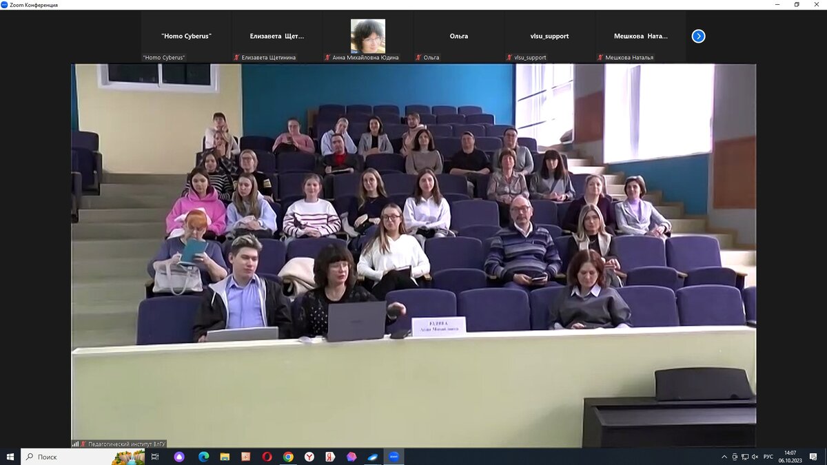 6 октября 2023 года состоялся круглый стол «Психолого-педагогическая профилактика террористической идеологии у молодёжи в киберсреде» в рамках Международной научно-практической конференции «Социокультурные, психологические и педагогические координаты развития личности» (5-6 октября 2023 г.) во Владимире, проводимый Владимирским государственным университетом имени Александра Григорьевича и Николая Григорьевича Столетовых.