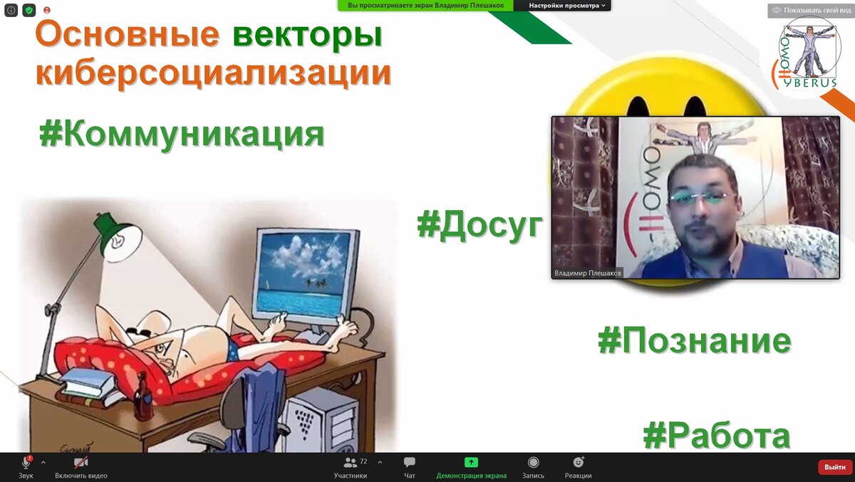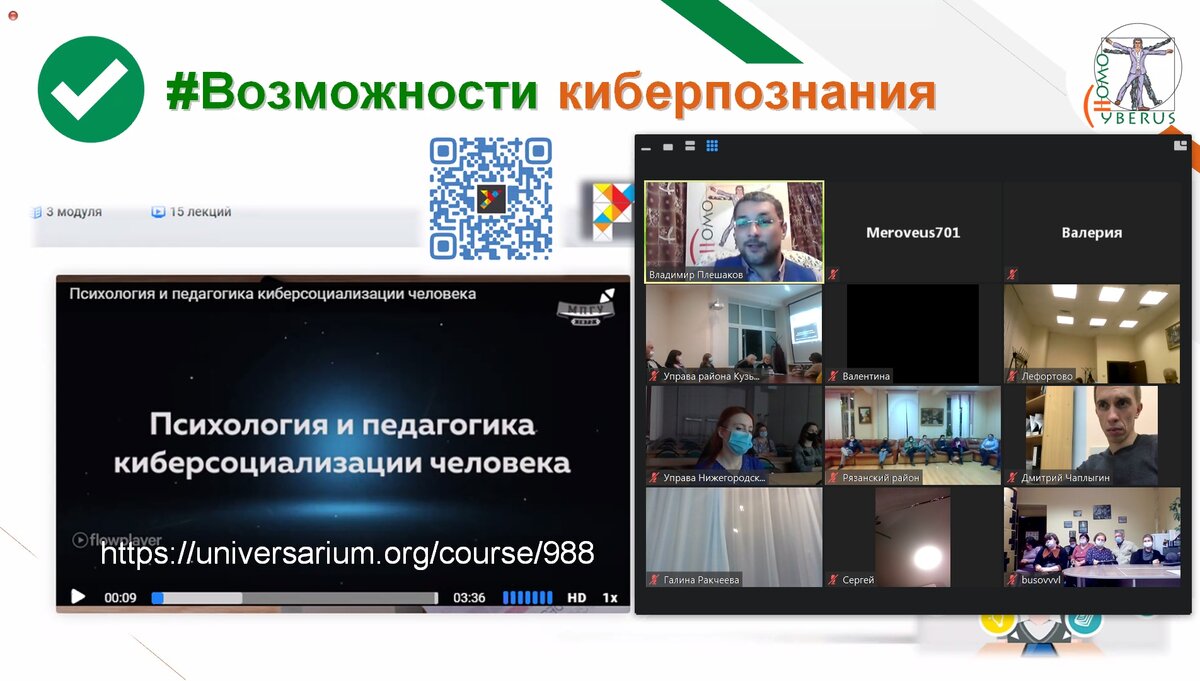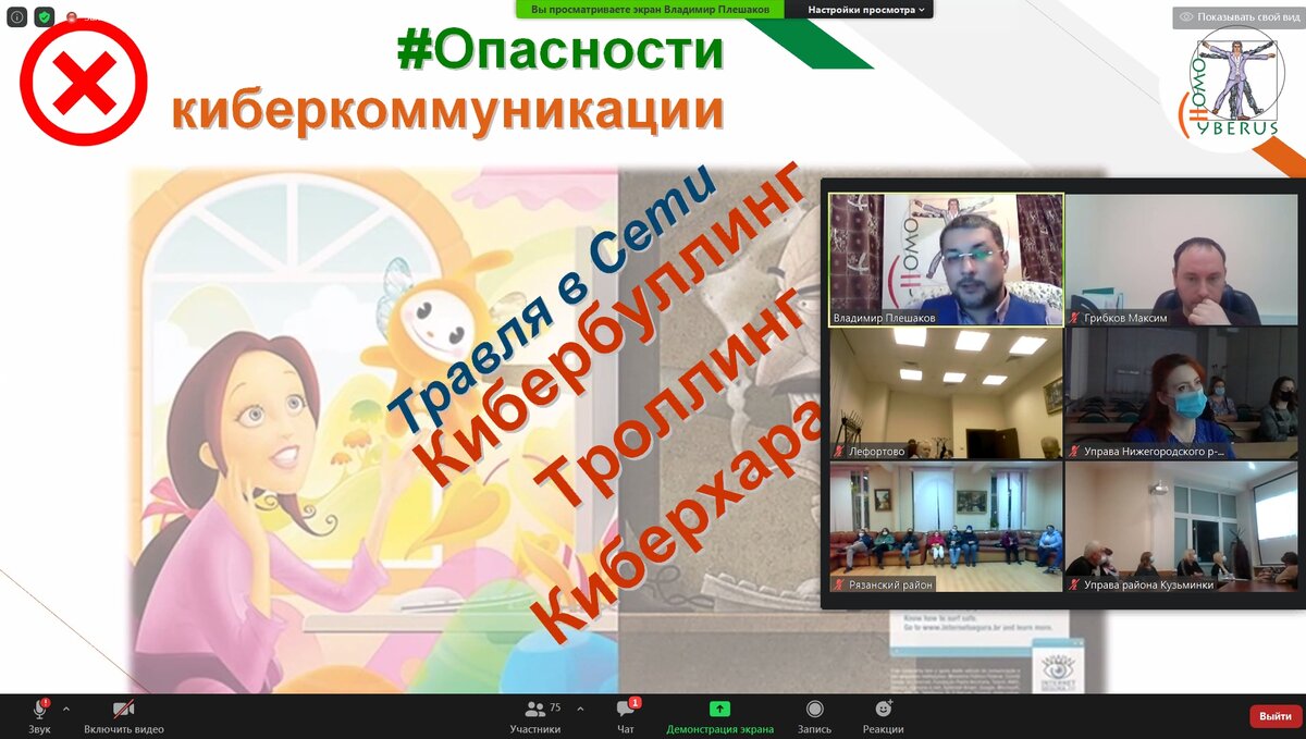 29 октября 2020 года главный редактор нашего интернет-портала "Homo Cyberus" и профессор МПГУ Владимир Плешаков выступил по специальному приглашению председателя совета Всероссийского общественного движения "Стопнаркотик" Сергея Полозова с помощью Zoom перед жителями юго-восточного округа г. Москвы с презентацией по теме "Внимание ребёнок!" Основы осмысленного использования сети Интернет, поведав основные постулаты своей авторской теории киберсоциализации человека, а именно рассказав о: